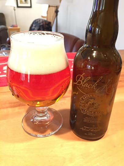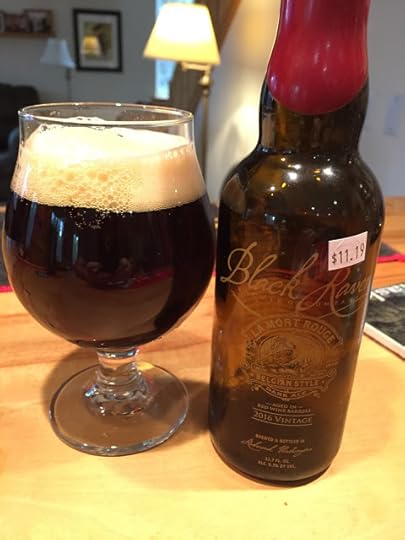 Black Raven Brewing's La Mort Rouge (2016): This is a Strong Dark Belgian Ale that's been aged in red wine barrels. It poured a deep, semi-translucent ruby color, with a small but persistent cream-colored head. The aroma was highly complex, with a mix of dark fruit and vinous notes. Carbonation was low but acceptable and the mouthfeel was medium to heavy. The complexity of the nose was repeated on the palate, with rich dark fruit flavors (plums, raisins, figs) intertwining with oak tannins and wine elements, before for falling away to a slow, long finish. This is a definitely sipper and a great beer for lovers of big red wines. I liked it, though not as much as the pale ale I reviewed above. 9.3% ABV.