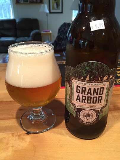 Southern Tier Brewing's Grand Arbor Farmhouse Ale: This is a different take on how to use a local ingredient (maple syrup this time) in a Belgian-style beer. It poured a slightly cloudy gold with the typical huge white head of a saison. Again, the aroma had plenty of the spicy, peppery notes I always associate with a Belgian yeast. Carbonation was great and the beer had a nice, light mouthfeel. There was some initial up front hop bitterness, then the beer slowly settled back, until I picked up some alcohol warmth on the finish. Not a superb saison, but an eminently drinkable one. 9% ABV.