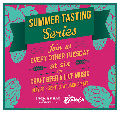 Starting May 31st, La Bodega will be holding a beer tasting event focused on a local brewery every other Tuesday at the beer garden at Jack Sprat Restaurant in Girdwood. First up, 49th State Brewing. Here's the ad for the events: