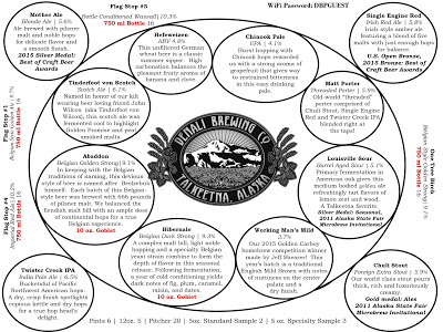 As you can see from this photo, Kenai River currently has seven beers on offer, the four listed above, plus Naptown Brown, Skilak Scottish, and Sunken Island IPA.