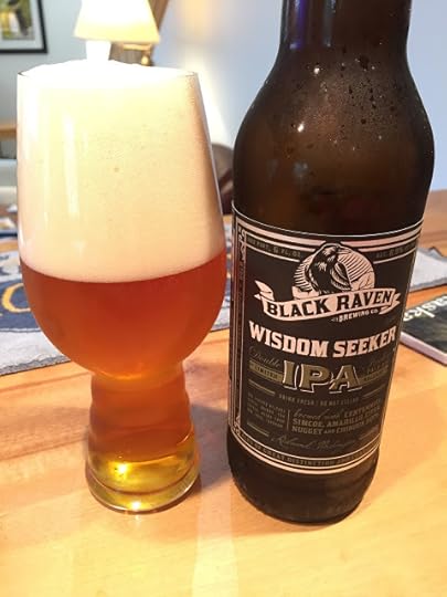 Black Raven Brewing's Wisdom Seeker DIPA: It poured a clear copper color with a big off-white head. The aroma was mainly of hops, plus hints of toffee or caramel. The carbonation was good and the mouthfeel was light for such a big beer. On the palate there was a nice balance between the forceful bitter attack and the malt backbone of the beer. Then the hop flavor came through, slowly falling away to a long finish. Surprisingly drinkable for a DIPA. 8.9% ABV, 85 IBUs.