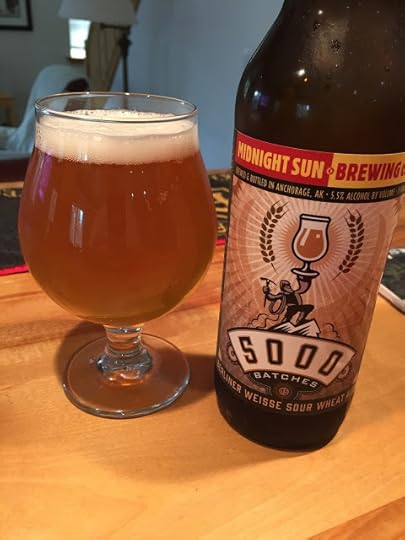 Midnight Sun Brewing's 5000 Berliner Weisse: It poured a cloudy gold with a white head that dissipated to a collar. The nose was a clean tartness, very appealing. The mouthfeel was light and the carbonation was good. The flavor profile was tart and refreshing, with no discernible hops. The perfect summer beer. 5.5% ABV, 15 IBUs.