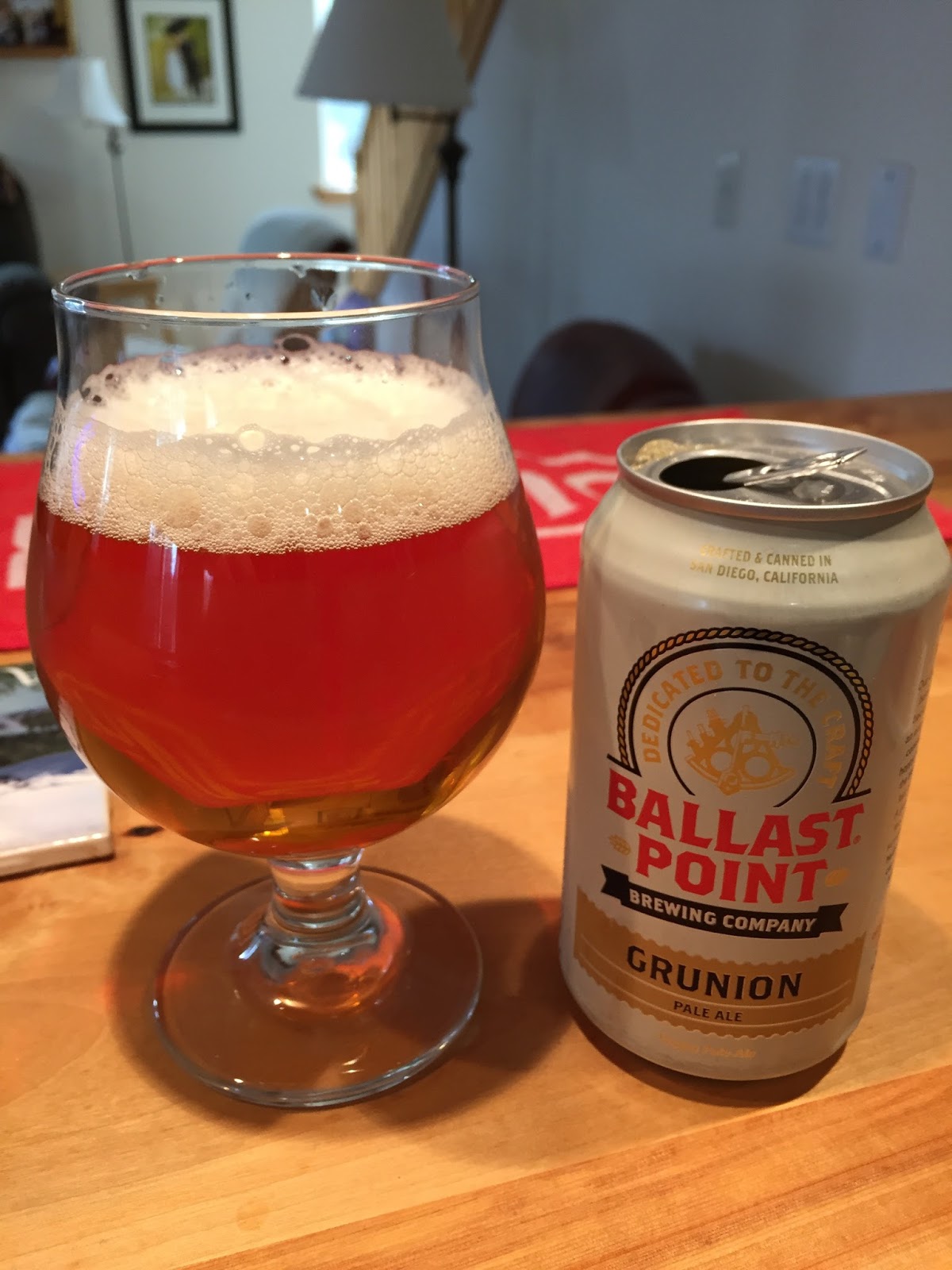 Ballast Point Brewing's Grunion Pale Ale: Another beer which has only recently become available in Alaska. It poured a clear copper color, with an off-white head. The nose was a mixture of citrus and melon notes from the hops used. Carbonation and mouthfeel were both good. On the palate there was moderate initial bitterness, followed by lots more fruit & melon-like hop flavors. If you like fruity hop notes, this is the pale ale for you. 5.5% ABV, 50 IBUs.