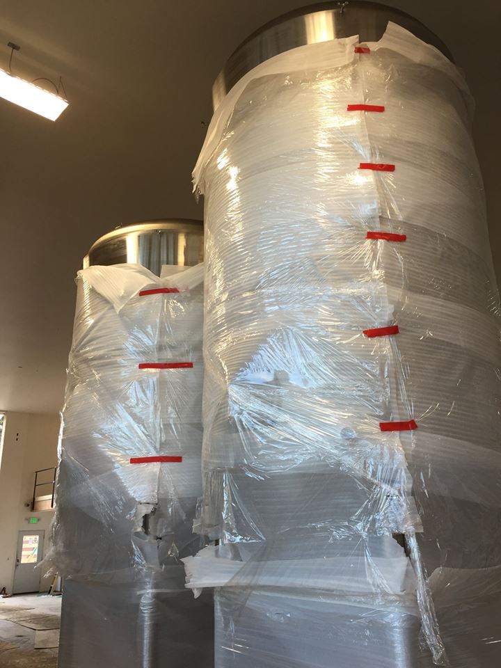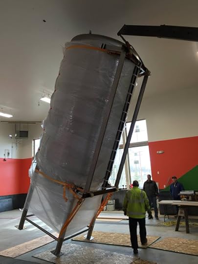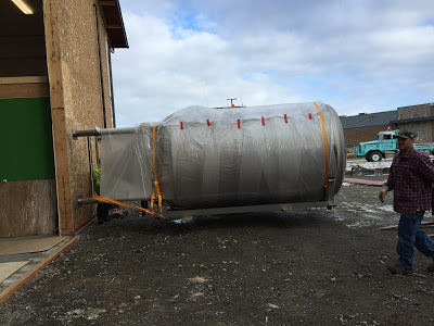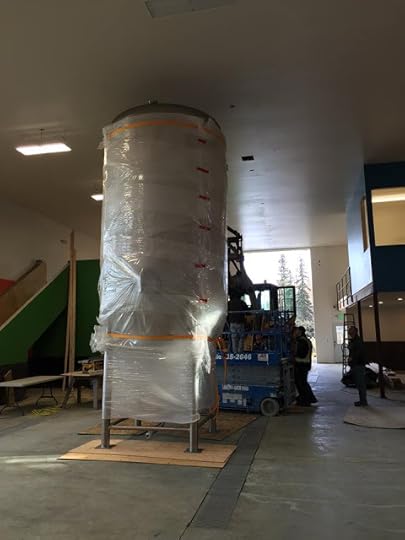 Kenai River Brewing has taken deliver of its new huge 180-barrel conical fermenters. Here are some photos of the delivery process in the new brewery, courtesy of Kenai River. I understand they cleared the ceiling with 3" to spare!