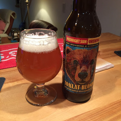 Kenai River Brewing's I'll Have Another Hoppy Lager: This was originally released back in January, as part of Alaska Beer Week , but I didn't get to try it until now. It poured a clear, light honey color, with a nice white head and good lacing on the glass. The aroma had lots of what I think were Citra hop notes. The carbonation was good and the mouthfeel was light. There was a nicely bitter initial attack, followed by lots of hop flavor, against a clean tasting malt background. Very nice.