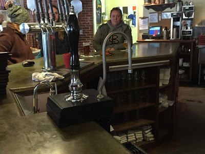 On Sunday, March 13th, Elaine and I made the long run from Sterling to Wasilla to check put Bearpaw River Brewing . I'd been trying to get up there since it opened back in December, but something had always come up to scuttle my plans. We got into town a few minutes before the brewery opened at noon and were looking for lunch, so we went into a Thai restaurant, just a couple of doors down from the brewery, called Thai Asian Cuisine . The food there was outstanding, so if you're looking for lunch in Wasilla, I'd recommend getting it to go here and then carrying it to Bearpaw River to enjoy, along with some fresh craft beer. After enjoying our lunch, we walked over to the brewery. Brewer Jake Wade was working that day, but he graciously took a few minutes out to talk with me. The brewery has a 10-barrel system from Global Stainless, four 10-barrel conical fermenters, and 2 brite tanks. There are 10 regular taps and one nitro tap. When we were there, there were eight brews on tap. Jake said that he had only recently sent a couple of kegs to a few select locations, like the Pub House and Fat Ptarmigan in Anchorage and the Eagle River Alehouse , but he was still keeping almost all of his production for sale at the brewery. I sampled the brand-new Dortmunder Export Lager (which really helped douse the fire from my lunch of spicy Thai food) and the 1778 English Ale, an ESB, both of which were excellent. I picked up a growler of the Mat Maid Milk Stout to take home; see my review of it below. Unfortunately, we couldn't stay too long, as we were looking at a four hour drive home. If you are in or around Wasilla, I strongly recommend you make the time to stop by Bearpaw River and check out the excellent beers that are being brewed there!