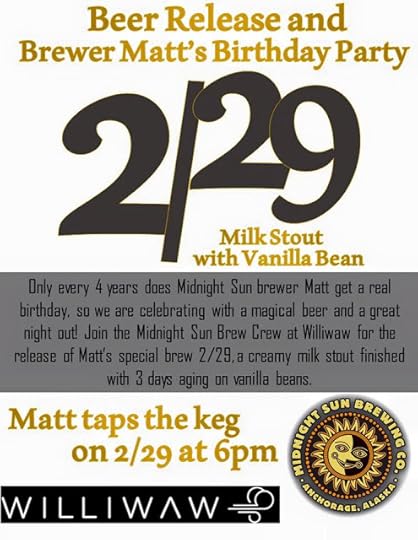 Back on Monday, 2/29, Midnight Sun Brewing released an new Milk Stout with Vanilla Bean Beer. Here's the flier for it:
