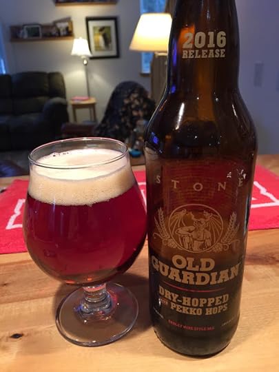 Stone Brewing's Old Guardian Barley Wine, Dry Hopped with Pekko: I picked this one up at Country Liquors in Kenai. It poured a dark but clear honey color, with a nice cream-colored head. The aroma was a good balance of malt and nice floral notes from the Pekko. Mouthfeel was medium and the carbonation was good, especially for a barley wine. Taste profile is definitely American barley wine, with an assertive 75 IBU hop presence against the big malt elements, but well-balanced. The 11% alcohol adds some warmth on the finish. Another nice beer, and it does a good job showcasing the versatility of this new hop strain.