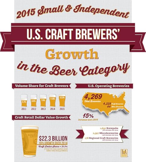 Click to enlargeGrowth in both the number of breweries and the volume of both beer and dollars value continues at a rapid pace. If you have any doubt why AB-InBev & MillerCoors are snapping up craft breweries, this graphic should make it clear.