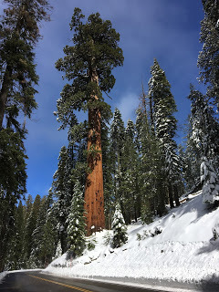SequoiaSequoia, my new favorite national park, was our next stop, and I could go on and on about it, but I’ll resist that temptation. It rained the evening we arrived, which meant it snowed higher up (where the sequoias grow). We were grateful to have all-wheel drive, which meant they didn’t require us to have chains to travel the winding mountain road up to the sequoia groves. The pictures I took speak for themselves, so I won’t ramble about the impressive, almost unbelievable size of the trees, or the splendid palette of white, red, and green that the snow and sequoias teamed up to create. We enjoyed a wonderful ranger-led snowshoe tour, and had a splendid time exploring the forests and meadows there. Needless to say this is one park we hope to visit again.