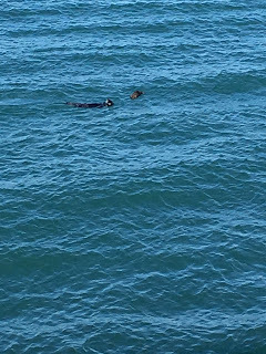 Mother and Baby Sea OtterSan Francisco was our next stop, and there we picked up Christina’s sister who flew out to meet us on her spring break from teaching. We got Chinese food (I’m not sure what exactly, but it tasted amazing!) and ate with a view of the Golden Gate Bridge and Alcatraz. We made sure to drive Lombard Street too. Then we left to drive down the coast, stopping at the incredible Monterrey Bay Aquarium, where we saw sea lions and sea otters, including a mother and her pup. In the wild, from the observation deck at the aquarium! They had sea otters in the aquarium too, which are used as foster mothers for orphan pups, but seeing them in the wild was truly extraordinary. The wildlife viewing there alone is enough of a draw, even without the wonderful aquarium inside.