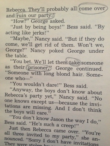 Part One: It's tough read and hard to get into in the first few pages, but then it started getting very interesting. I love the three book references I found and the chocolate one. At points the story is either scary or funny. I love that it reads like a journal. It's cool to have the story in third person. It's interesting reading all this knowing the narrator is in prison. I love her last words the friends exchanged and how she ended her journaling with I have told the truth.