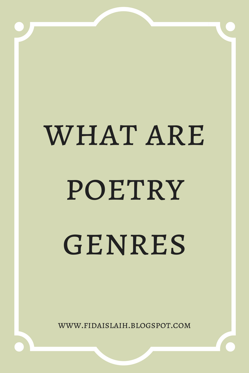Genre means the type of art, literature or music characterized by a specific form, content, and style. Poetry genres are any literary genres like sci-fi, fantasy, etc. While researching I found this: “three major genres: epic poetry, lyric poetry, and dramatic poetry, treating comedy and tragedy as subgenres of dramatic poetry."