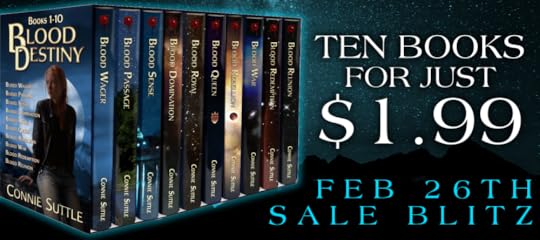This is the complete set of ten books in the Blood Destiny Series by Connie Suttle. At a once-in-a-lifetime price of $1.99 (February 26th only), this would be an excellent time to add the boxed set to your collection, or give to family and friends for the holidays.Lissa’s life as a vampire begins on the day her husband is removed from life support. Turned by rogues who wager her life, Lissa is running from her maker who is determined to kill her, hunted by the Council, who has branded her a rogue and blackmailed by werewolves, who utilize her newly-developed talents for their own gain.About the Book