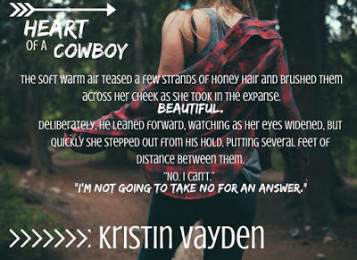“That is the only point,” he interrupted.“I...I could lose my job.” She spoke quietly.“Are you on the clock right now?” Cyler reached up, tracing the line from her ear along her jaw, pausing at her full lips.“It’s complicated. But in short, no.” she murmured, her expression softening.“Good.” Without giving her a chance to protest, he closed the final distance between them and sealed her lips with his.At first contact, he realized the danger he’d just invited. It wasn’t just a kiss; rather, each nerve had come alive, demanding more. Angling his head slightly, he was able to capture more of her kiss, deepening the exchange as his tongue ran along the seam of her lips, begging for entrance. He could feel her hesitation melt as she leaned into him, her lips caressing his, inviting, intoxicating him with each touch.As she opened her mouth, her arms tentatively grasped his forearms before sliding up to his shoulders then pulling him in tight. Cyler’s already- burning body smoldered deeper, demanding more than just a kiss. Yet he held himself in check, in spite of the pounding blood that seemed to overtake every other sense.His hand slid up her back, mapping the delicate curve of her waist. Her tongue met his, stealing every other rational thought as he accepted her invitation and tasted the full flavor that was Laken. Her fingers slid up from his shoulders, threading through his hair and tugging, causing his heart to pound harder, his body to grow even harder as he pressed into her soft curves. He breathed in her soft gasp as he bit on her lower lip, pulling her in, leading her. He mated with her lips, fusing his with hers, searing his brand with each brush of his lips, each caress of his hand across her waist.Abruptly she pulled away, her green eyes wild as they blinked up at him, staring deep into his soul. Naked in his eyes—yet fully clothed—she studied him, and the kiss had him off guard just enough that all the careful walls he’d constructed were still lowered.Damn it all.“So...that just happened,” she whispered, a hand reaching up to touch her pink lips. “Whoa.” She swallowed, his eyes capturing each minute movement, each tiny shift of her gaze.Then she smiled.“To be fair, I did warn you I wasn’t taking no for an answer.” He relaxed slightly, feeling less exposed and vulnerable.“You did.” Her gaze flickered to the ground as her lips tipped into a lopsided grin.“And I’ll be straight with you. I’m going to kiss you again.”Her gaze shot back to his, widening slightly. “So, you’re saying I don’t get a choice?” She flirted.He chuckled. “I’m saying you don’t really want one.”She rolled her eyes. “A little sure of yourself, aren’t you?” She tucked her hands into her back pockets, regarding him.He took a small step forward, leaning in to her before whispering, “You kissed me back.”Her pert nose scrunched up. “Caught that, did you?”“Yup. Pretty much.” He laughed softly, reaching out and tugging on her elbow, and she willingly released her hand from her back pocket.“Fair warning?” she asked as he leaned in.“Fair warning,” he murmured before taking her lips once more, astounded at how her warmth captivated him, and how his blood went to an immediate boil.He’d expected her to moderate the kiss, and he’d been fully prepared to tease her, to test the waters to see how far she’d let him push, but what he hadn’t been prepared for was her response.Rather than play hard to get, she returned the kiss with full force, biting his lower lip and fanning the already-burning flames. Her hands mapped his back, kneading, tracing, driving him crazy with each touch, reminding him that he could—should—be closer. He groaned as she tugged on his button-up shirt, sliding her hand up his chest, skin on skin.He breathed in her sigh as he splayed his hands across her hips, pulling her closer then rocking her against him. He was taken by surprise when she kissed then bit him gently on the neck before quickly disentangling herself from his grasp and walking away.Confused, he turned to watch as she glanced over her shoulder, giving him a teasing grin. “Fair warning.”Cyler’s face broke into a wide smile, one that caused his cheeks to ache with an unfamiliar yet welcome pain as he watched her hike back up the hill. “Are you just going to stand there and stare, or are you going to hurry up? Daylight’s burning.” She taunted as she continued her trek toward the truck. Cyler rubbed the back of his neck with his hand, shaking his head, and grinning. “Is that how it’s going to be?”