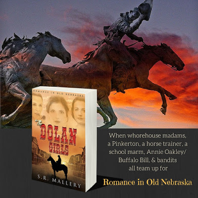 The Dolan Girls by S. R. Mallery has it all. Set in Nebraska during the 1800s, whorehouse madams, ladies of the night, a schoolmarm, a Pinkerton detective, a Shakespeare-quoting old coot, brutal outlaws, and a horse-wrangler fill out the cast of characters. Added to the mix are colorful descriptions of an 1856 land rush, Buffalo Bill and his Wild West Show, Annie Oakley, bank/train robberies, small town local politics, and of course, romance. Two, in fact!