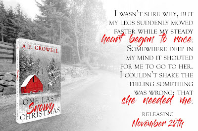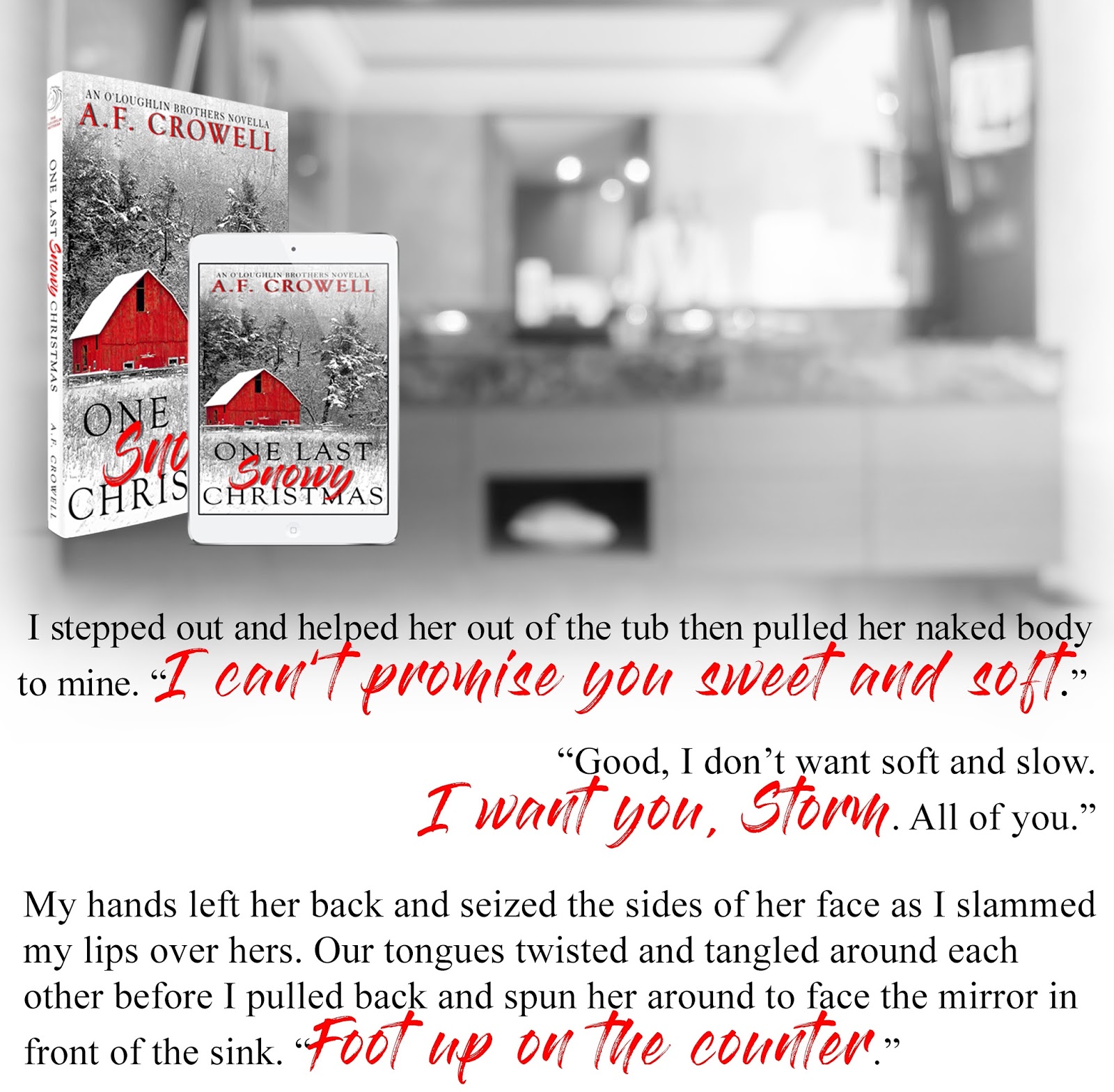 Title: One Last Snowy ChristmasAn O'Loughlin Brothers Series NovellaAuthor: A.F. CrowellGenre: Contemporary Romance/Holiday RomanceRelease Date: November 28, 2017