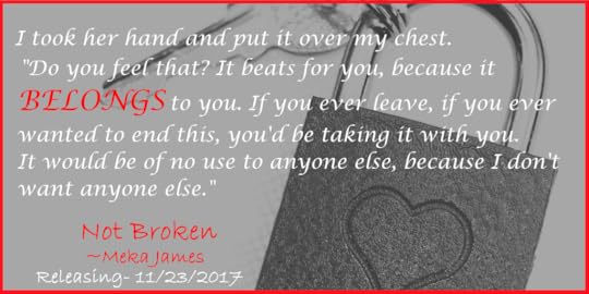 Title: Not Broken Author: Meka James Genre: Contemporary Romance Release Date: November 23, 2017 Cover Designer: Design for WritersHosted by: Buoni Amici Press, LLC.