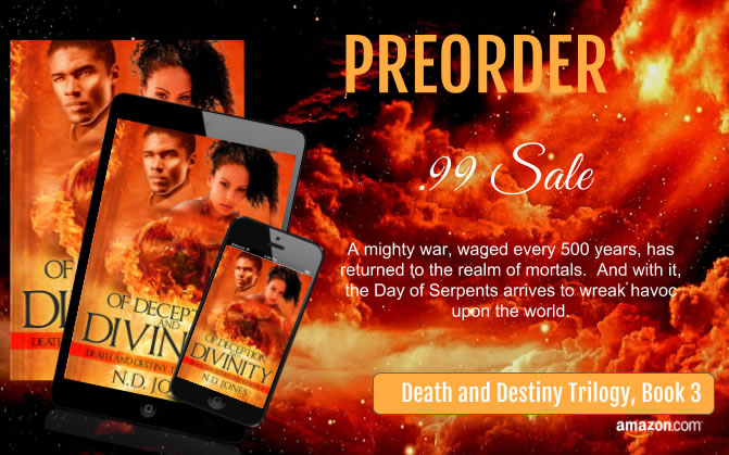 A desire to see more novels with positive, sexy, and three-dimensional African American characters as soul mates, friends, and lovers, inspired the author to take on the challenge of penning such romantic reads. She is the author of two paranormal romance series: Winged Warriors and Death and Destiny. N.D. likes to read historical and paranormal romance novels, as well as comics and manga.