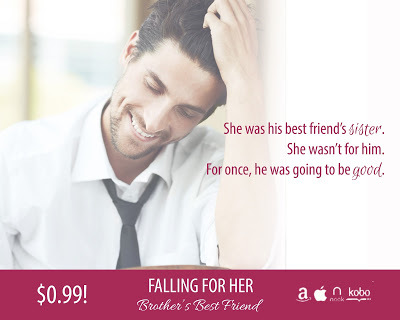 Title: Falling for her Brother's Best FriendSeries: Tea for Two #1Author: Noelle AdamsGenre: Contemporary Romance NovellaRelease Date: June 7, 2017