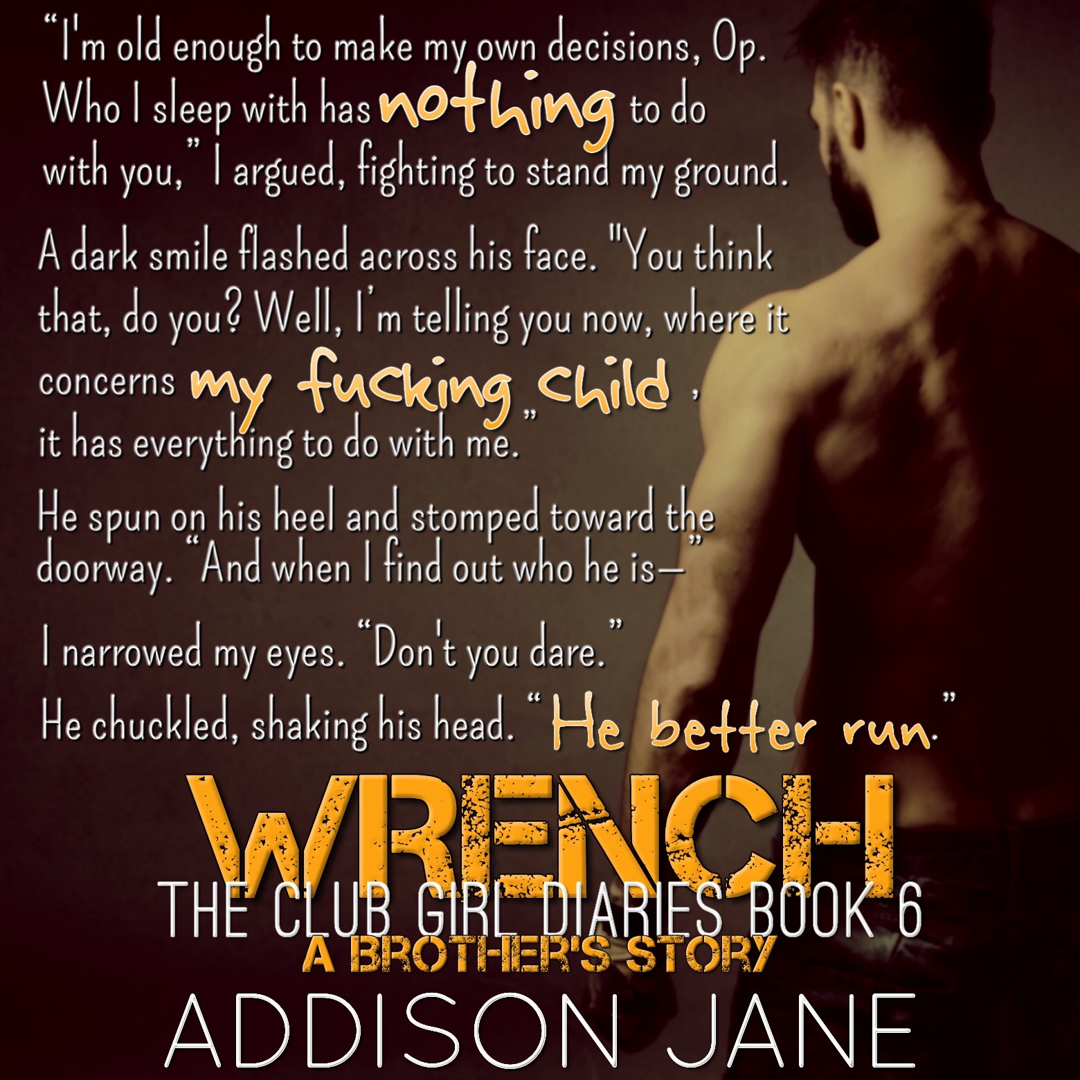 Title: WrenchSeries: The Club Girl Diaries #6 Author: Addison Jane Genre: Contemporary Romance Release Date: May 3, 2017