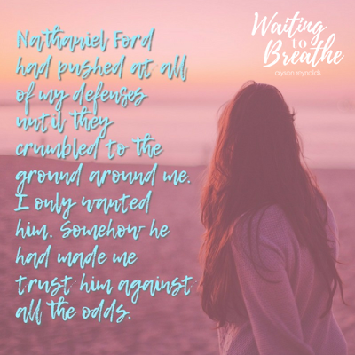 Title: Waiting to BreatheSeries: Waiting Duet #1Author: Alyson ReynoldsGenre: New Adult/Contemporary RomanceRelease Date: March 21, 2017