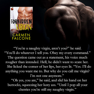 Author: Carmen FalconeTitle: Forbidden VirginGenre: Erotic RomanceRelease Date: February 6, 2017Cover Designer: Sweet & Spicy DesignsEditor: Summer Ross