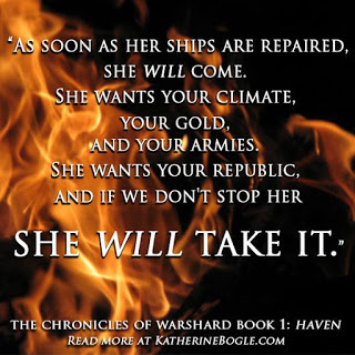 ✯✯✯✯✯Some things are worth fighting for ~ Haven must decide what it isBy Meagan @ Blooming with BooksWar has come to the Six Kingdoms of Warshard and the Kingdom of Rythern is the latest victim of Queen Kadia's insanity. With the murder of her parents and her brothers Haven Fyre is now queen of Rythern, a role she was never suppose to hold. But her people need a queen, and in Haven they will have one that cannot be killed.Going to war against Kadia seems suicide with the kingdoms various armies having suffered losses to her shadow soldiers. With this seeming impossibility the Royals are faced with an impossible decision - fight, flee, or do nothing.Does Haven commit her remaining soldiers to aid King Corrin in his plan to retake his fallen capital? Or are her troops needed first and foremost in defense of Rythern? Or does she offer Rythern as a place of sanctuary for those who are fleeing Kadia's aggression?Relying on the advise of her closest friends and her desire to protect her people, Haven makes a decision that will forever change her life and the future of the Six Kingdoms.Haven is a book that takes the reader on a journey - a journey of emotion, of loss, of friendship, of betrayal, and of promise. And this is a journey of growth as Haven becomes the queen she never expected to be by facing her fears and learning to live life.This is the first (per the title) in a series and I for one am looking forward to additional books in this series. Though the book is complete in the story it is telling there is most definitely plenty of material from which more could come. The writing style of Katherine Bogle is steady and flowing. There are periods of endless action mixed with those of waiting which is true to what one would experience in one's own life if one were in a similar situation.This book is definitely aimed at older teens and adults due to the subject matter of a few scenes - this book after all deals with war and the violence that comes with such a state of affairs. Overall I highly recommend this book and this author's work.