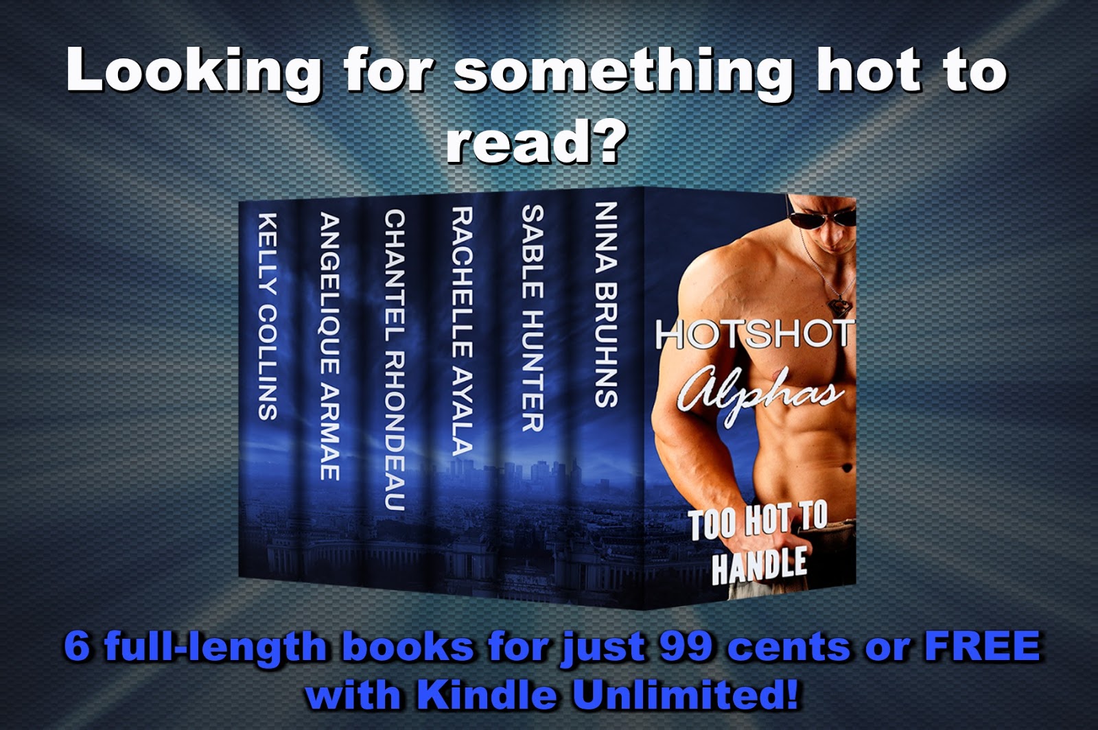 Because you just can't get enough! Hotshot Alphas are men who know what they want and get what they want. Will it be you? 6 full-length heroes, oops, I mean, romances with brash and exciting lovers from NY Times, USA Today, and International bestselling authors. Get your cowboys, chefs, special operatives, and sexy bad boys today. LIMITED TIME OFFER.