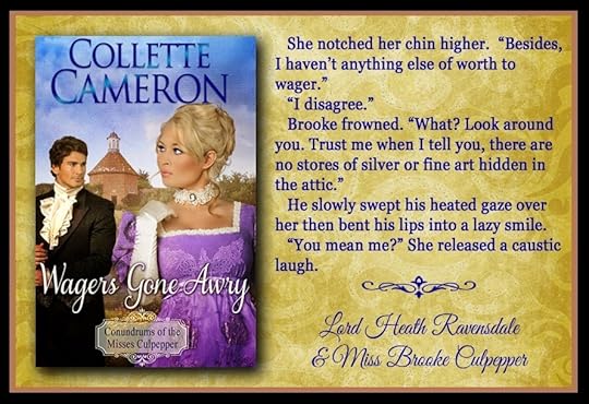 Wagers Gone Awry by Collette Cameron Series: Conundrums of the Misses Culpepper, Book 1Genre: Historical RomanceRelease Date: April 7, 2015