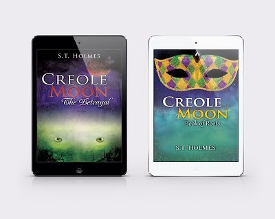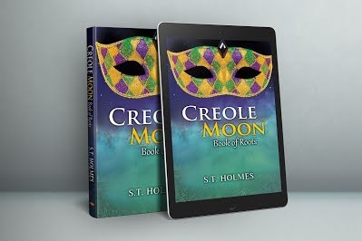 Creole Moon Book of Roots by S T Holmes is a fantasy fiction set in the early 1900s. Mamuska, the voodoo priest, needs to return to his home in the Louisiana swamp to renew his strength and vigor, but Ayida, serpent goddess and mother of the demi gods, forbids him to take his wife, Ophelia. They argue until Ayida becomes angry and conjures a storm as a warning to Mamuska, but he doesn’t heed the warning and slips his wife out of their cosmic home and back into the swamp.