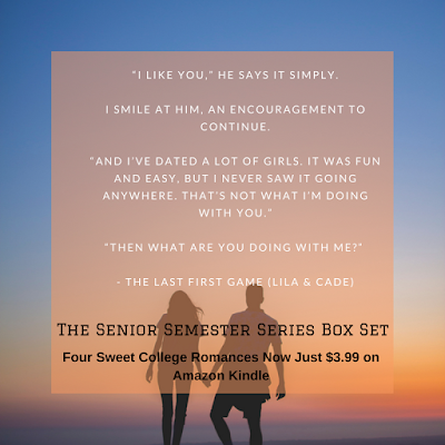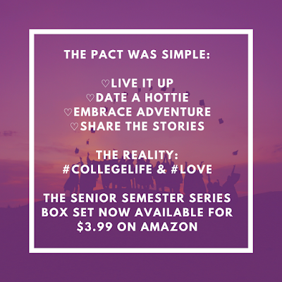 Best friends, Lila, Mia, Maura, and Emma, are parting ways for the start of their senior year of college. Excited to embrace their new journeys, they make a pact to step outside their comfort zones, never expecting to each find romance that blooms into love. The Senior Semester Series contains four, full-length, new adult, sweet romance novels about these exceptional women…and the men who capture their hearts. Intended for readers 18+.