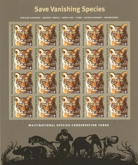 Amur tiger cub on US semipostal stamps.Purchase of these stamps benefits conservation funds for elephants,great apes, rhinoceros, marine turtles, and of course, tigers.Available from the US Postal Service. For more information, visit the US Fish & Wildlife Service.