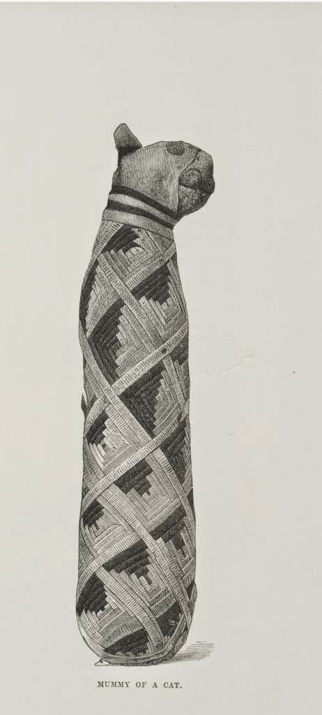 We have read in various places that some or one or none of the cat mummies from Beni Hasan ended up in either the British Museum or London’s Natural History Museum, but so far we have not been able to track down the truth.