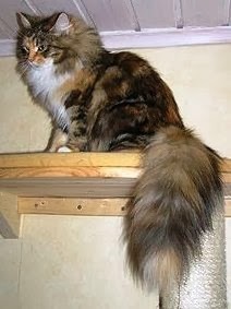 Photo by Roswitha Budde,Cattery vom Hohen Timp[CC-BY-SA-3.0],via Wikimedia Commons.The ancient Greeks knew how to name an animal. Their word for “cat” was ailouros , which means “moving tail.” How apt. Because we cats are constantly moving our tails. We wave them in anger, we flick them in excitement, we hold them straight up in greeting, we sweep them slowly across the floor in contentment. Some of us even move our tails in our sleep.