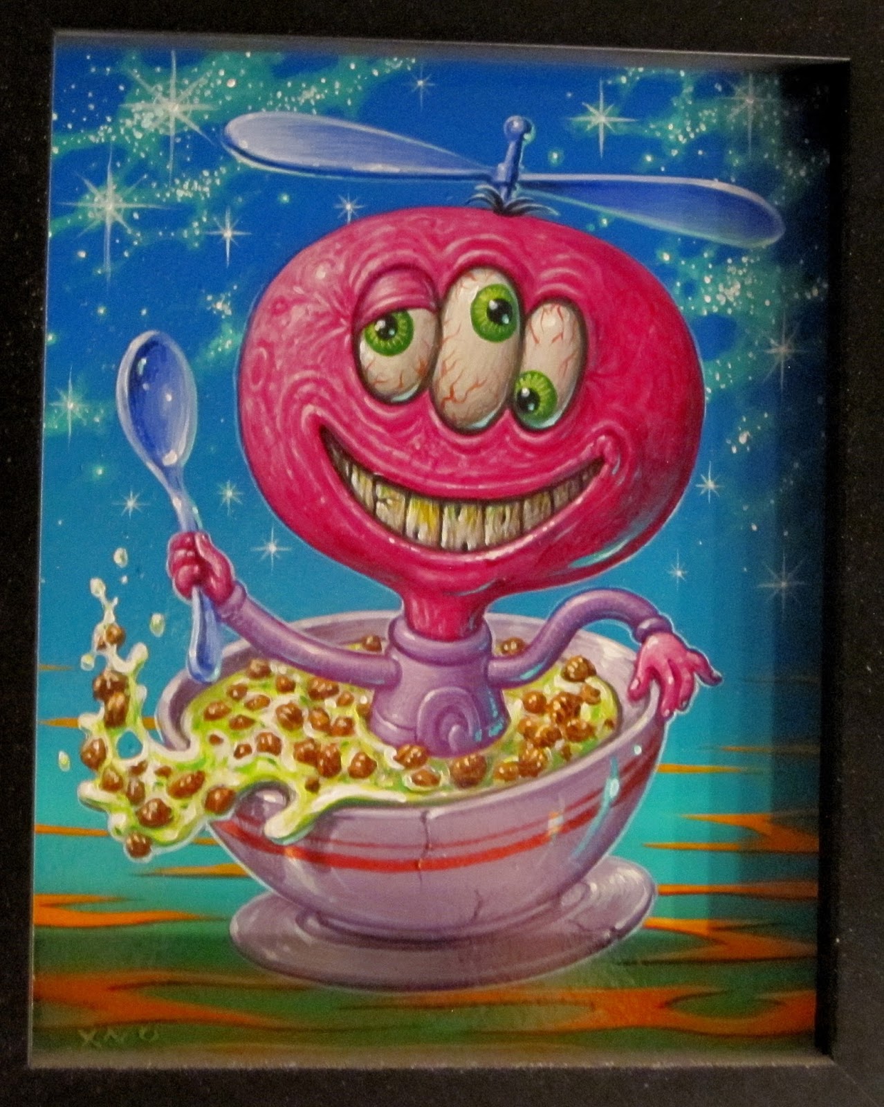 My bout with collecting began while spending an eternity attending openings at Copro Nason Gallery, which at the time was in sleepy Culver City. Always a major fan of the works of XNO, when I attended a show and noticed that his Quisp painting was available at a super cool price I snapped it up right away (thanks, Gary).