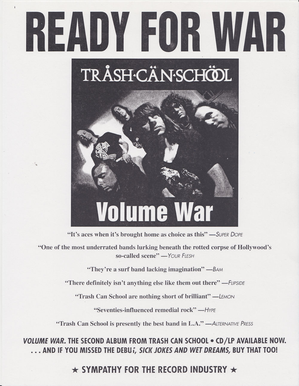 Needless to say, the accompanying tour in support of the album was an unqualified disaster, leading up to the breakup of the band. I still listen to Volume War (named after the three guitarists turning up their amps over each other throughout rehearsal until one couldn't even hear themselves anymore) and am amazed at what a great piece of work I created with these guys. One day Volume War will have its day because all maverick works get the recognition they're due.
