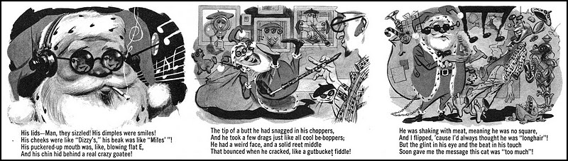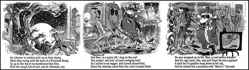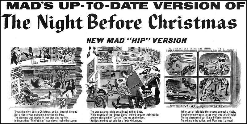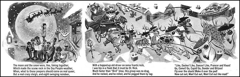 Another tiny pleasure is this brilliant Mad Magazine beatnik takeoff on The Night Before Christmas illustrated by Wally Wood. Mad Magazine, beatniks, and Wally Wood; it doesn't get much better than this: