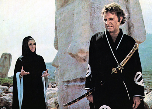 Finally Dick barges onto her property as sculptor Chris Flanders, clothes in tatters from guard dogs that have attacked him. He’s outfitted in a samurai warrior’s outfit (complete with sword). Noel Coward, an unwelcome guest at Goforth’s home, tells her that Flanders has been nicknamed by friends as “The Angel of Death”. Liz does a lot of cool yelling in this one, but Burton displays enough charm to keep you watching him through the picture. I think Liz takes “Virginia Woolf” but Dick takes this one. P.S. This can be viewed FOR FREE on You Tube.