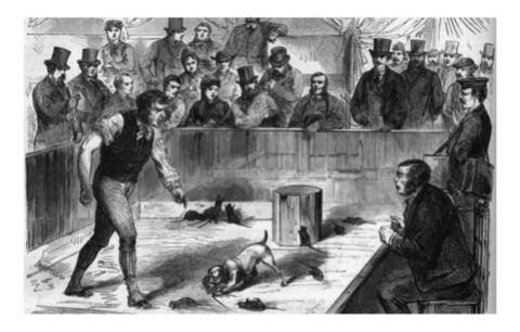 Rat Man steps into the pit with his hungry houndmoney changes hands the bell is rungrelease the rats release the houndgrowling, squeaking, men all shouting cacophonic soundsMonsieur LacheurLacheur Monsieur