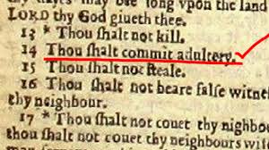 Some of the most famous books, past and present have had their share of problems and not even having God as an editor helps. In 1631 Robert Barker and Martin Lucas, the royal printers for Charles I, put out a new edition of the King James Bible with a teensy little error. Glory hallelujah, adultery was now not only legal, but required. The book soon became known as the Wicked Bible, Adulterous Bible, or Sinners’ Bible. All have a nice ring to them. Neither the king nor the Archbishop of Canterbury had a sense of humor and the publishers of the Wicked Bible were called to the Star Chamber and fined £300. Copies were destroyed, but a few escaped and are now highly sought after collector’s items.