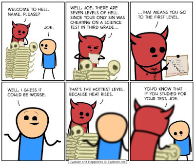 The version of Hell in Judaism can be summed up in one word: meh. Little mention is made in Judaic texts other than references to a place called Sheol that is dark and deep (naturally.) In general, there are no fixed notions of particular judgments or punishments. Another place in Judaic texts is Gehinnom, but again the views are mixed. Some scholars view it as a place of punishment and retribution, others more of a section of the afterlife set aside for introspection to review mistakes committed in life and then repent them. Don’t repent enough? Something bad is bound to happen, but details are murky.