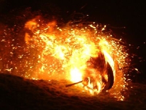Summer solstice festivals in Great Britain's pagan times often involved fire. Flames, smoke, and ashes were believed to have purification powers to drive away evil spirits and protect homes, families, livestock, and crops. Hence the continued use of burning palms on Ash Wednesday. Rituals also involved singeing horses or cattle with embers or driving them through the smoke to invoke magical protection. One of the more bizarre practices is still done for tourists. Locals roll a giant flaming wheel down a hillside and (hopefully) into a lake and not the neighbor’s barn. The wheel is stuffed with straw or hay. Pagans believed if it rolled all the way to the bottom and into the water the harvest would be good. If it didn’t make it or skewed off the path, the harvest would be bad, and probably make the neighbor with the burning barn come after you with a pitchfork.