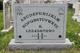 Elijah Bonds GraveWhere did the name come from?Contrary to popular belief, “Ouija” is not a combination of the words for yes in French and German, oui and ja. One of Kennard’s initial investors was a man named Bond. His sister-in-law, a proponent of spiritualism, supplied the name in very sensible way. She asked the board what it would like to be called and it spelled out “Ouija.” She asked what that meant and the board replied, “Good luck.” At the time, she happened to be wearing a locket with picture of a woman, with the name “Ouija” printed above her head, but that was only coincidence, of course. There was also a popular women’s rights activist Ouida and “Ouija” may have been a misspelling, but the name sounded exotic, a little creepy and oh so suitable for summoning the dead. How does a Ouija Board work?The mysterious mechanism that powers the Ouija board is called the ideomotor effect. It can generate a strong impression of movement controlled by an outside agency. The brain signals your body to move without conscious awareness. Dowsing rods work on the same principal, a small muscle movement causes a larger effect. Planchettes are particularly well-suited to this as they have felt pads to glide smoothly over the even, flat surface of the board.