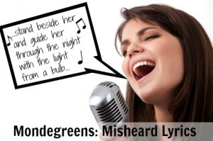 What’s that, you say? You all know them and may even have a favorite. A mondegreen is an error resulting from a listener mishearing something in a song, poem, or phrase. Since the listener can’t determine the correct words, the brain substitutes something else that sorta makes sense, but leads to a lot of head scratching.