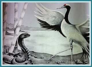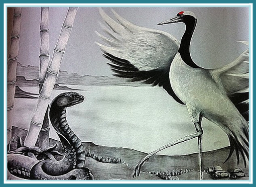 Ng Mui became a Buddhist nun. Although highly proficient in the existing styles of kung fu, she felt it was possible to devise a more effective fighting method which didn’t rely on brute strength or require years to master. Her story has several versions, but the one I like says one day, she watched a fight between a stork and a snake. The stork used its wings and legs to deflect and counter-attack at the same time. Inspiration struck Ng Mui. She adapted the technique to create a unique new martial art that emphasized a delicate but natural self-defense style and transcended size, weight and gender. The movements required little force to block and could strike effectively and efficiently.