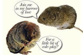 There are big differences between the three categories and how they relate to a person’s emotional state of mind. The nasty slobbering sex hormones of testosterone and estrogen drive lust. They are revved and raring for sexual contact and reproduction. While lust is exclusive to romantic entanglements, it doesn’t care about the future, picking out curtains together, or wedding bells. Lust wants her jollies now. Lust is explosive and short term, but with the right mental attitude and hormonal boost can morph into long-term attachment, and this isn’t only found in humans. Let’s give it up for our friends, the prairie vole. Prairie voles indulge in far more sex than is strictly necessary for the purposes of reproduction. (Life is good for prairie voles.) Biologists have determined in their society sex is the prelude to long-term male/female pair bonding. In an experiment, male prairie voles were given a drug to suppress hormonal effect. The bond with their partner deteriorated immediately. They lost their devotion and failed to fend off their partner’s new suitors. Couples counselling had no effect.