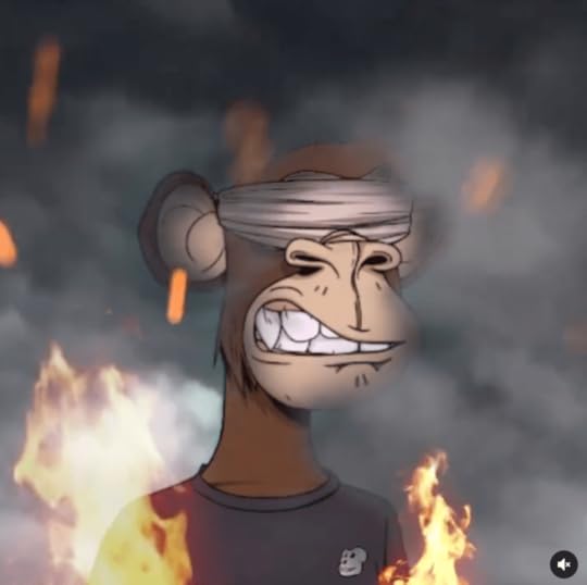 Still from Taylor.wtf’s Burning ApeTheir position was that as Taylor had burned the Ape before releasing the video, he was no longer the owner and thus no longer had rights to use the work. However! As they were not the owner anymore either it’s questionable about why they felt the need to intervene, which they clarified by saying they were doing so with respect to the current owner – and would do the same for any ape transferred from one party to another if the previous owner kept using it. However however! Since the ape was burned, by all understanding it has no owner, so whose rights were BYAC defending? No one came forward claiming to own that wallet and protesting, and no one could prove that the wallet wasn’t actually Taylors. Or, anyone else who might claim to own it. Point being, no one said “I own this thing and I object to how it’s being used by someone else.” Once this came to light it seems BYAC realized this was a huge steaming pile of shit they’d walked into, and cautiously backed out of it. The video was re-listed elsewhere without protest and remains online.