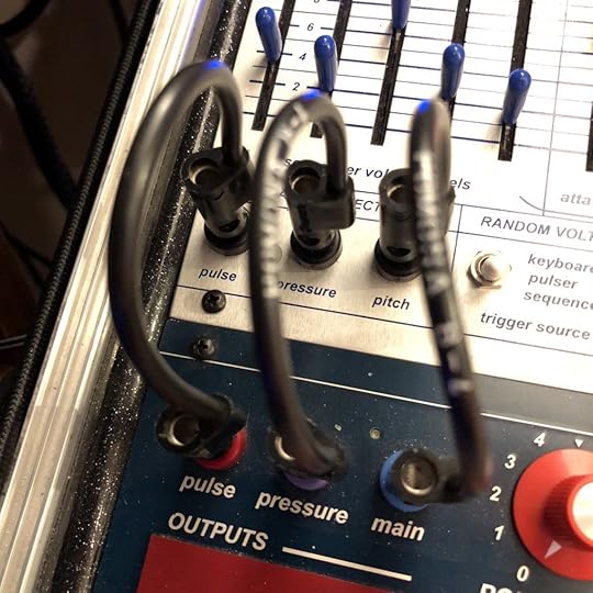 I spent a lot of today thinking about a composition and how I wanted it to work, and when I finally had a few minutes to play with knobs and cables I just couldn’t get it there. I got close, and ended up somewhere that wasn’t at all bad, but wasn’t the thing I had in my head going into it. The Buchla Music Easel does that I lot l find, it gives you some thing, just not what you’d necessarily expected. Speaking of expectations there is another tweakable thing that I always think to explore but just never have. The 3 CV outs from the keyboard module correspond to the 3 CV ins above them, but they don’t have to. They can be rerouted and hijacked in any number of ways. Send the sequencer CV to the pressure CVIN and simulate keystrokes maybe? Turn a pulse into a gate? So many options.