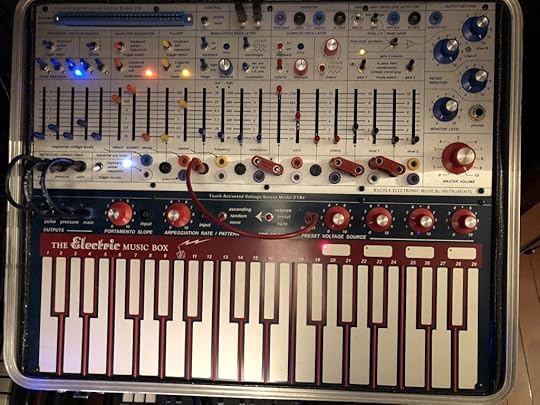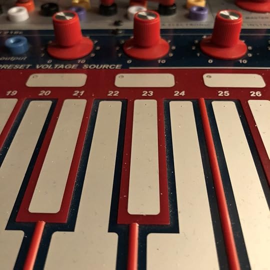 Most of what I’ve been talking about and thinking about is the CV and sliders but I he entire other half of the Buchla Music Easel is a touch plate keyboard. Not being a keyboard player myself I’ve been hesitant to dive in too much to this module, defaulting to the cables and knobs I’m more comfortable with, and honestly I still have so much to learn with that focusing on it not a problem. But this half of the instrument is not just an afterthought. Currently, I use it for changing octaves (or presets) of one or the oscillators and almost nothing else so I know I’m barely scratching the surface of what it’s capable of. The touch plates themselves are quite expressive and I’ve seen people do amazing things with it, but again with the sleepy drones that I tend to do a lot of the keyboarding or arpeggios don’t immediately fit in my brain when I’m thinking of compositions. I think the most natural thing I could start exploring would be the pressure CV out which I could use to trigger an envelope, maybe the more contact I have the longer the sustain would be, with fixed attack and decays. That sounds interesting in fact. I think I’ll try to figure out how to do it.